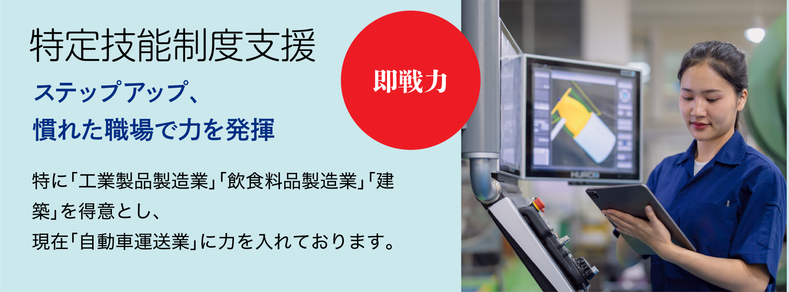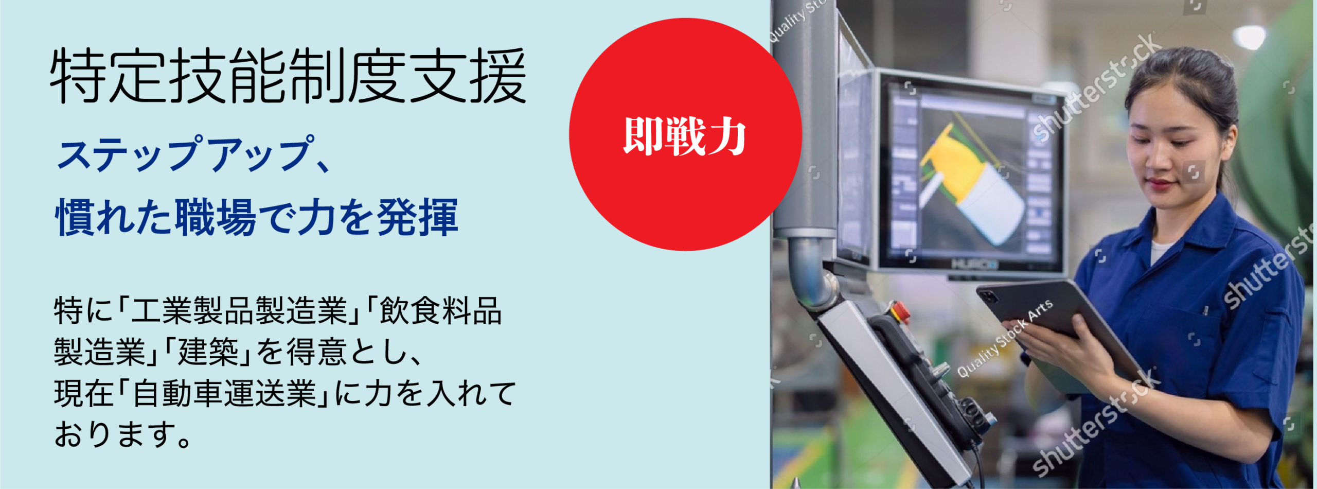 特定技能16分野(製造、建設等)に精通した専門スタッフが、 業務内容・就労環境を踏まえての採用支援を実施。